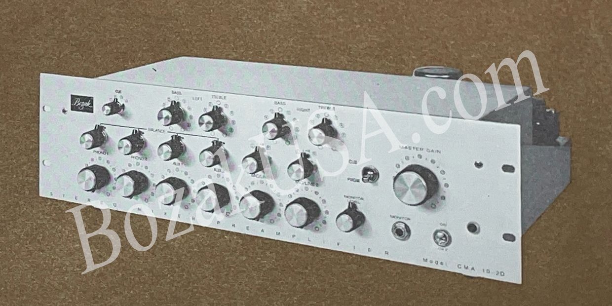 Long before any other mixer company and something very few people are aware of, Bozak was the first to experiment with ic chips. The CMA 10-2 series mixer output remained analog and only the Monitor output circuit was designed and tested with ic chips. The CMA 10-2DL went to a more powerful TTL circuit to accommodate the use of 8 ohm headphones. Many CMA 10-2 series mixers are found with the ic