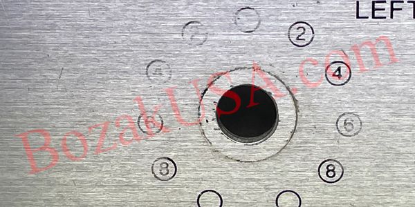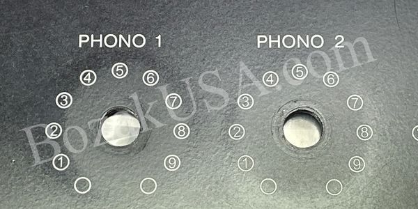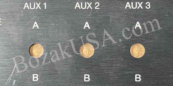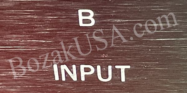 Between 1965-1995 Bozak relocated several times in Connecticut. In 1995 the Bozak final location in Flordia was dissolved. During these 30 years several fabrication shops were used to produce panels. All orders stated “ finish and screening critical” plus “machine grain fine surface and black anodize finish.” No original plates were painted or have a smooth anodized finish. Print screening was raised and not etched that wears over time. Many original plates are found with extremely worn print. Mixers can be found with original plates drilled by individuals to add modifications, but stickers were never used.